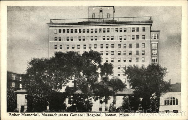 Front: ana ヨ == -O= =uauuu uコ■33 :- ヨ Baker Memorial, Massachusetts General Hospital, Boston, Mass. Back: PUB. BY THE MASS. SPA., 279 CAMBRIDGE ST., BOSTON, MASS. 200