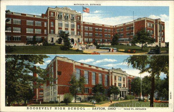 Front: MATHISON ST. ENTRANCE XX XXXXX ROOSEVELT HIGH SCH OOL DAYTON, OHIO THIRD ST. ENTRANCE 1A1999 Back: 350 “C. T. AMERICAN ART” REG.U.S. PAT. OFF. MADE ONLY BY CURT TEICH & CO., INC., CHICAGO