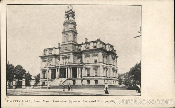 Front: 30 The CITY HALL, Lynn, Mass. Cost about $300,000. Dedicated Nov. 30, 1867. Back: Card. Sprange Souvenir Series BEACH BLUFF, MASS. GEM VIEW CO. ہی جو