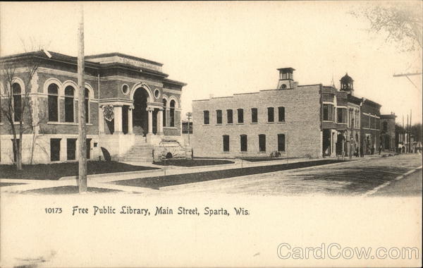 Front: !! ... 10173 Free Public Library, Main Street, Sparta, Wis. Back: The Rotograph Co., N. Y., City. (Germany.) مورے