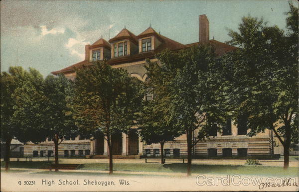 Front: G30231 High Schcol, Sheboygan, Wis. Martha Back: The Rotograph Co., N. Y., City. (Germany.) BO JUL 167 1913 WIS Miss Campbell ORIG Carolina Heberer skn Hen Nis was R. F, L, 32. WAAAAAM n 2 میرے