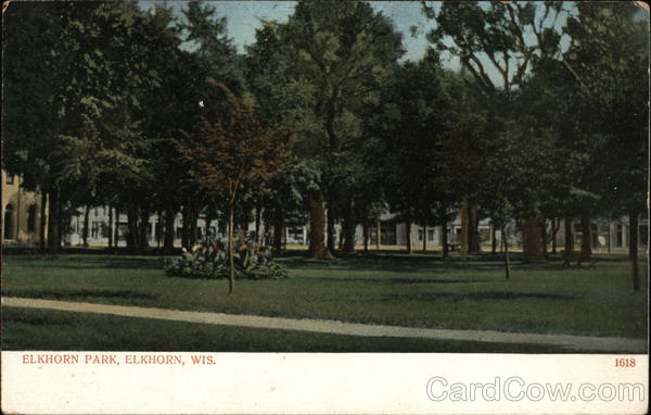 Front: ELKHORN PARK, ELKHORN, WIS. SP WE 1618 Back: A. C. Bosselman & Co., New York. One Cent for United States, and Island Possessions, Cuba, Canada and .... For Foreign. مدفة