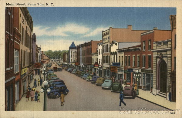 Front: Main Street, Penn Yan, N. Y. 76955 Back: 2500 #5 "TICHNOR QUALITY VIEWS" REG. U. S. PAT. OFF. MADE ONLY BY TICHNOR BROS., INC., BOSTON, MASS.