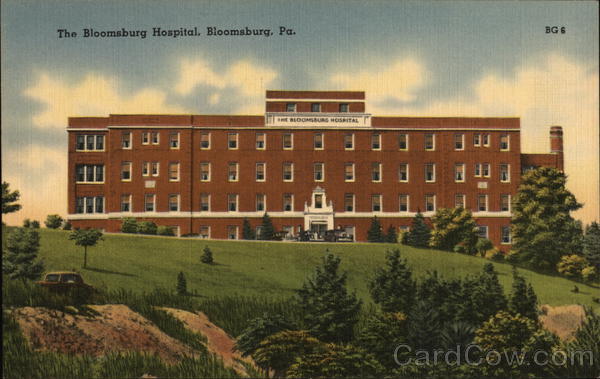 Front: BG 6 The Bloomsburg Hospital, Bloomsburg, Pa. IHE BLOOMSBURG HOSPITAL 日日 日J1J Back: MADE IN U. S. A POST CARE PUB, BY R, RAMSAY MEBANE, WILKES-BARRE, PA. سے لے 68610