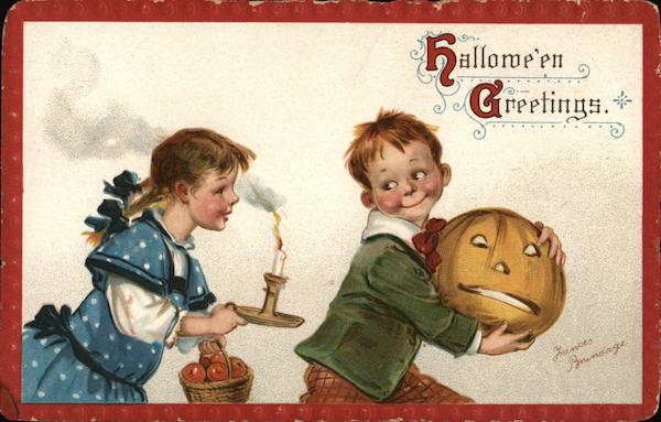Front: 10 9001 hal allowe'en Greetings. * Frances Brundage Back: "Hallowe'en" Series-Postcard No. 120. 10000 10000 For Correspondence. & Canada PO Two Cents.