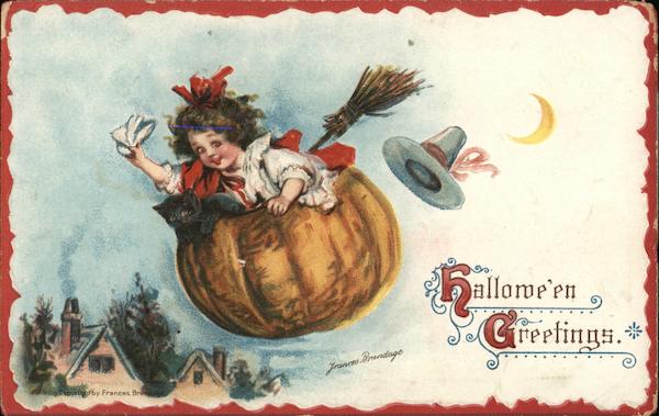 Front: Paffiting Copyright by Frances Brundage Frances Brundage allowe'en 19 Greetings.* Back: Postcard Series No. 121. For Correspondence. در روز M4 & Canada MACA