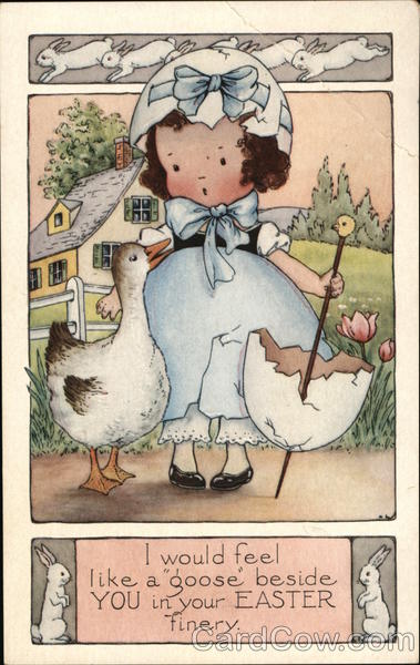Front: EX Mi DAN I would feel like a goose beside YOU in your EASTER finery. WA Anille Back: Whitney Made MADE IN U. SA, ADDRESS ONLY