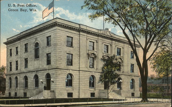 Front: U.S. Post Office, Green Bay, Wis. E: Back: MADE IN U. S. A PUBLISHED BY GREEN BAY POST CARD CO., GREEN BAY, WIS. C.T. PHOTOCHROM. A-8663 DOST 2