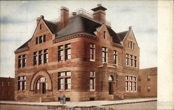 Front: SU நரக IN POST OFFICE, DAVENPORT, IA. SMALL BLAG Back: MESSAGE CAN BE WRITTEN ON THIS SIDE 121 ROCK ISLAND POST CARD CO. ROCK ISLAND ILL. R. H. R. aksmusson 3ee