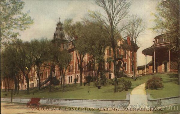 Front: 21 IMMACULATE CONCEPTION ACADEMY, DAVENPORT, IOWA Back: MESSAGE CAN BE WRITTEN ON THIS SIDE 140 ROCK ISLAND POST CARD CO. ROCK ISLAND ILL. Florence. Rasmusson