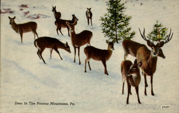 Front: Deer In The Pocono Mountains, Pa. 17,977 Back: A "COLOURPICTURE" PUBLICATION, BOSTON 15, MASS., U. S. A. CANADENSIS. PA. PUB. BY FRED SCHAEFER,