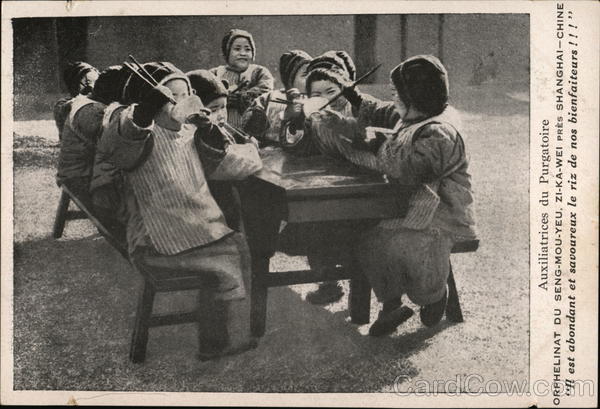 Front: Auxiliatrices du Purgatoire CORPHELINAT DU SENG-MOU-YEU, ZI-KA-WEI PRÈS SHANGHAI-CHINE "Il est abondant et savoureux le riz de nos bienfaiteurs !!! " Back: 8.- *********