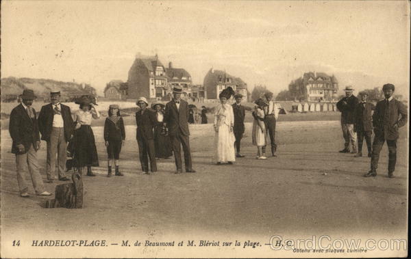 14 HARDELOT-PLAGE. - M. de Beaumont et M. Blériot, sur la plage.-H. C.