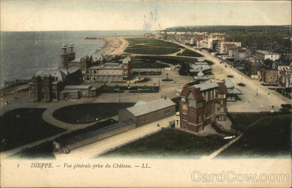 Front: DIEPPE.- Vue générale prise du Château. - LL. Back: Tous les pays étrangers n'acceptent pas la Corres- pondance au recto. Se renseigner à la Poste. ADRESSE