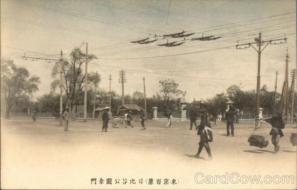 Front: innin生 HEA TISTEPORT 門幸園公谷比日(景百京東) 古 Back: 製堂進明町張尾通堅銀 TRADE M MARK TOKYO.JAPAN Union Postale Universelle. POSTALE CARTE きかは便郵