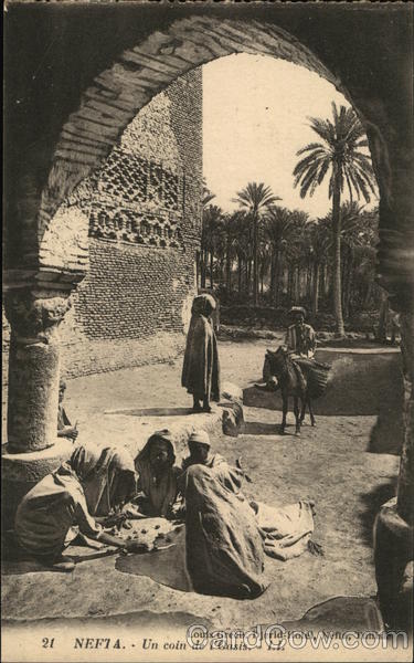 Front: 21 Louis Grech, Djerid-Hotel, Nefta, Tunisie NEFT A. Un coin de l'Oasis. - LL Back: RUE LETFLITER 44. REUNIS. ST NEUROFIN LEVY N'écrire que SUT le côté réservé à la correspondance