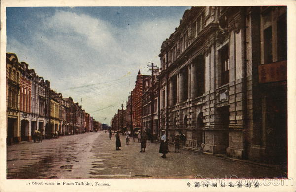 A Street scane in Fuzen Taihoku, Fomosa. 的通街前店北臺灣臺,