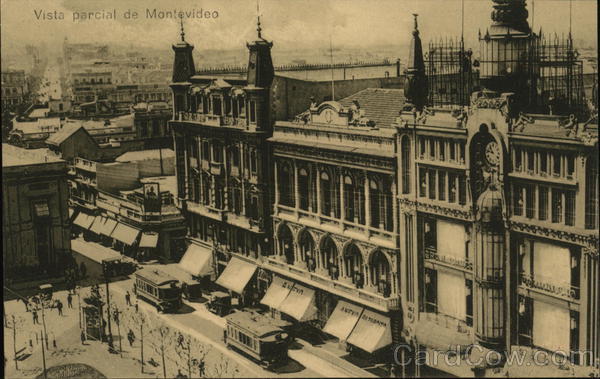 Front: Vista parcial de Montevideo TE TIGRE LING A NEVA 1919 ANFYA RA7ADMITA GRELL CAUSES 4067 Back: Montevideo Uruguay Correspondencia Direccion