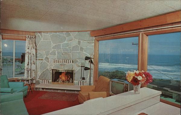 Eighteen units, each with an ocean view. Completely furnished, electric refrigerators and ranges, tiled showers, fireplaces, individually controlled heat. Apartments to accommodate 1 to 6 persons. Lincoln City, Oregon. 4239 S. Highway 101 Phone 996-3828 Dexter Press Inc. |