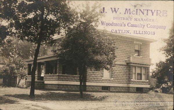 Front: J. W. MCINTYRE DISTRICT MANAGER Woodmen's Casualty Company CATLIN, ILLINOIS Back: as 91 AZ O A = STAMP z NO 4 A AZOA