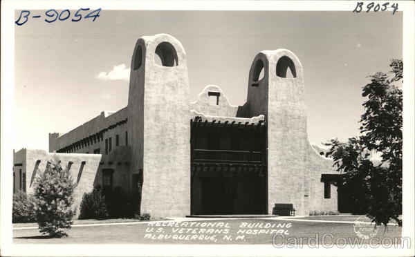 Front: B-9054 CHITUL RECREATIONAL BUILDING U.S. VETERANS HOSPITAL ALBUQUERQUE, N. M. 39054 Thoune FOTOS POMONA CALIF Back: PUBLISHED BY FRASHERS, INC., POMONA. CALIF. ¡D سے جی