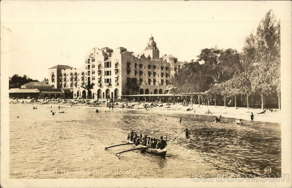 Front: with BLATY HF 102 - Royal Hawaiian Hotel Honolul Back: 18. (Bldgs. Hotels unten ² 1943 ? FOST CARD Royne Howarna Hora Oct 311943 A uw #9 REAL PHOTO CORRESPONDENCE W were to come over here If you I think the band a lot about this then god