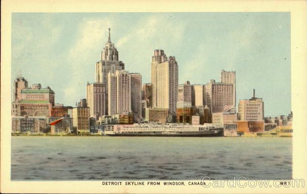 Front: DETROIT SKYLINE FROM WINDSOR, CANADA WR 1 Back: Copyrighted. Published by Valentine-Black Co. Ltd., Toronto, Canada BOND STREET SERIES CARD