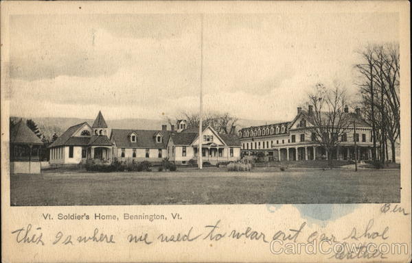 Front: 323 00000000 0.0 11 71 WITH Bin Vt. Soldier's Home, Bennington, Vt. this is where we used to wear out our shol leather Back: Miss Abbie es Oneonta TH 3PM 28011 SERIEN 1902 UNITED STATES OF 1706 FRANKLIN 1790 ра Otrega bo ва dy
