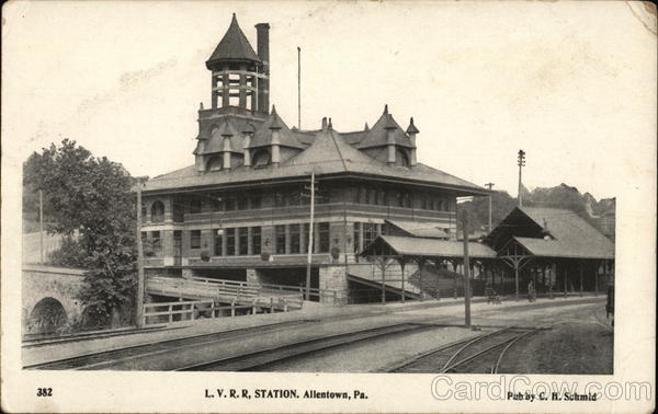 Front: 382 L. V. R. R, STATION. Allentown, Pa. ww Pub by C. H. Schmid Back: 2- AUTHORIZED BY ACT OF CONGRESS OF MAY 19-1898 ("POST CARTE-POSTAL CARD-CARTE POSTALE) سباني Domestic and Two Cents