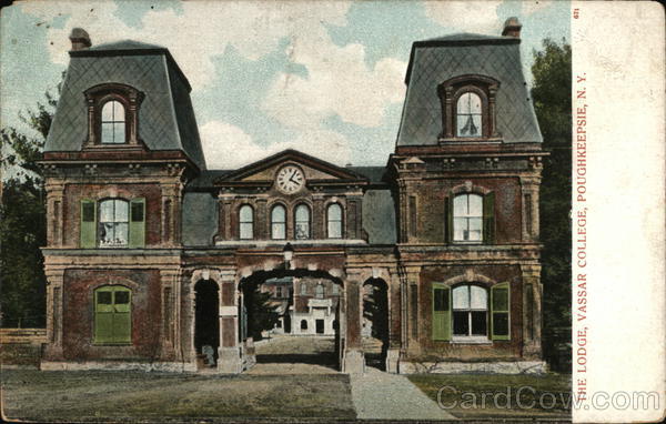 Front: THE LODGE, VASSAR COLLEGE, POUGHKEEPSIE, N. Y. Salz 671 Back: A. C. Bosselman & Co., New York. 414000 One Cent for United States, and Island Possessions, Cuba, Canada and ... For Foreign.