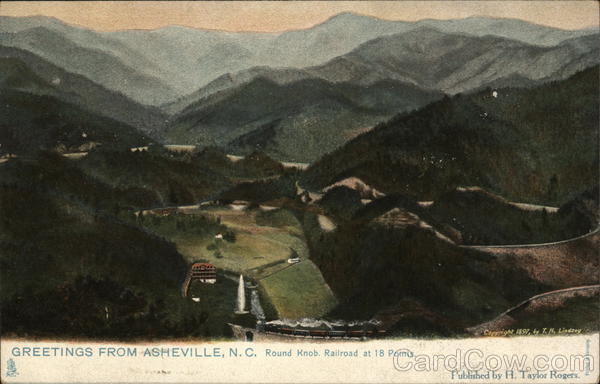 GREETINGS FROM ASHEVILLE, N. C. Round Knob. Railroad at 18 Points.