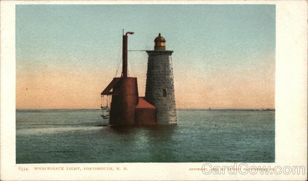 Front: 6334. WHALESBACK LIGHT, PORTSMOUTH, N. H. COPYRIGHT, 1902, BY DETROIT PHOTOGRAPHIC CO. Back: PT. AND CANADA, FOREIGN, Two CENTS.