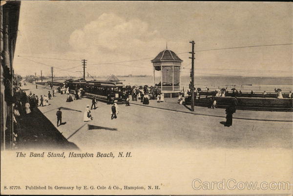 Front: The Band Stand, Hampton Beach, N. H. S. 87770. Published in Germany by E. G. Cole & Co., Hampton, N. H. AP V Back: PT 125 One Cent for United States, and Island Possessions Cuba, Canada and For Foreign. 35