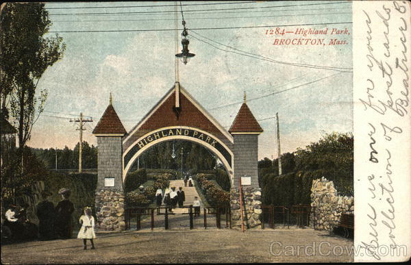 Front: TAT316 TR261-22 1284-Highland Park, BROCKTON, Mass. салово your ūūūh w we one Here Back: ROCK Postara8 6-45P 07 19 peg 200 Mes Lucile Palmer Somarcal- Mass R. F., D. FREED SERIES 1902 UNITED STATES OF 1706 FRANKLIN 1290 ONE CENT