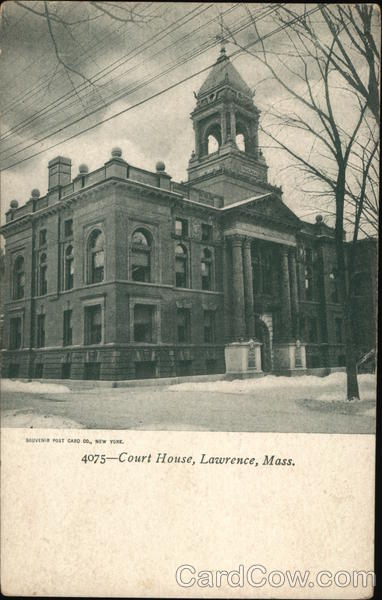 Front: SOUVENIR POST CARD CO., NEW YORK. 4075-Court House, Lawrence, Mass. Back: ZA to. th 100 TWO CENTS