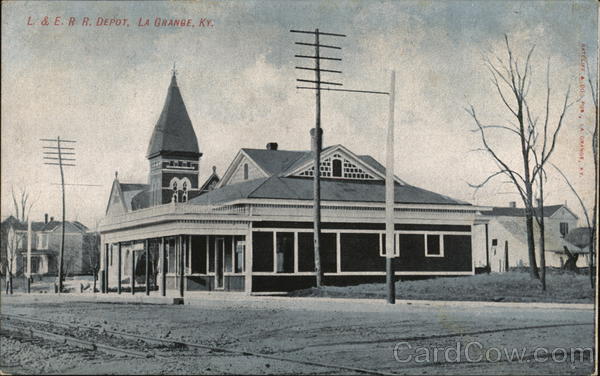 Front: L. & E. R. R. DEPOT, LA GRANGE, KY. RATCLIFF & CON PUB, LA GRANGE, KY. Back: THIS SPACE IS RESERVED FOR MESSAGE. The space above is reserved for Postmark IS. POS- CAN A DIAN MEXICAN Ic 2c
