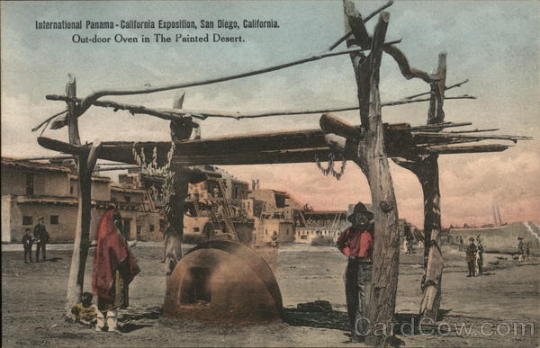 Front: International Panama - California Exposition, San Diego, California. Out-door Oven in The Painted Desert. No.878, Back: Published by Fred. Harvey. DOMESTIC, FOREIGN, 2 CENTS