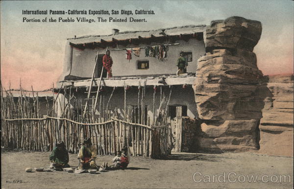 Front: International Panama-California Exposition, San Diego, California. Portion of the Pueblo Village, The Painted Desert. No 872 Back: Published by Fred. Harvey. DOMESTIC, FOREIGN, 2 CENTS