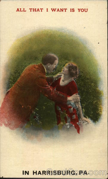 Front: ALL THAT I WANT IS YOU IN HARRISBURG, PA. Back: HOLMFIRTH BAMFORTH & CO. LTD. PUBLISHERS (ENGLAND) AND NEW YORK. POST- O