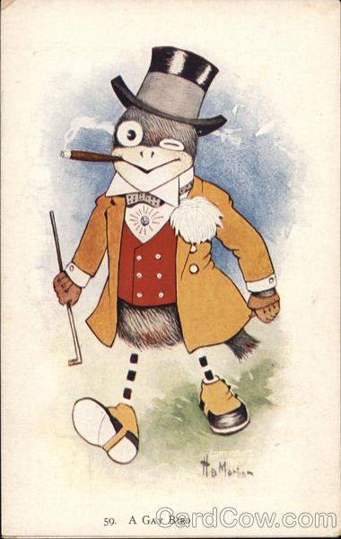 Front: BERBLO 59. A GAY BIRD COPYRIGHT Ta Martine Back: ART ONAL RELLO MOT TRADE COMPANY MARK POST CARD' CARTE POSTAL POST-KARTE FOREIGN