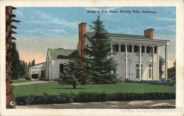 Front: WAD Home of Pola Negri, Beverly Hills, California. 3 Back: fornia GREETING LOS ANGELES CO. 30286N -Co Copyright and Published by California Greeting & Post Card Company, Los Angeles, California.