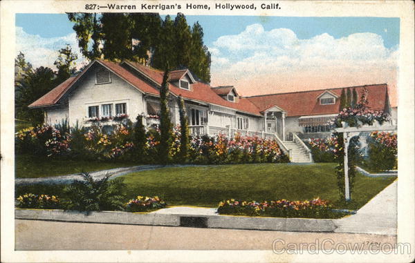 Front: 827: Warren Kerrigan's Home, Hollywood, Calif. 33 (Omn 17601 Back: Pub. by the M. Kashower Co., Los Angeles, Cal. MADEMUSA IN STAMP HERE