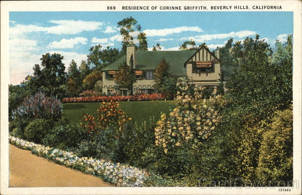 Front: 869 RESIDENCE OF CORINNE GRIFFITH, BEVERLY HILLS, CALIFORNIA U RUU 121860 Back: WESTERN PUBLISHING & NOVELTY CO., LOS ANGELES, CALIF. HERE
