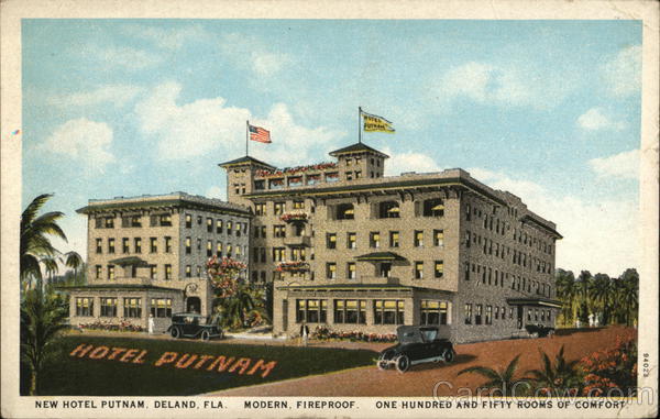 NEW HOTEL PUTNAM, DELAND, FLA. MODERN, FIREPROOF. ONE HUNDRED AND FIFTY ROOMS OF COMFORT.