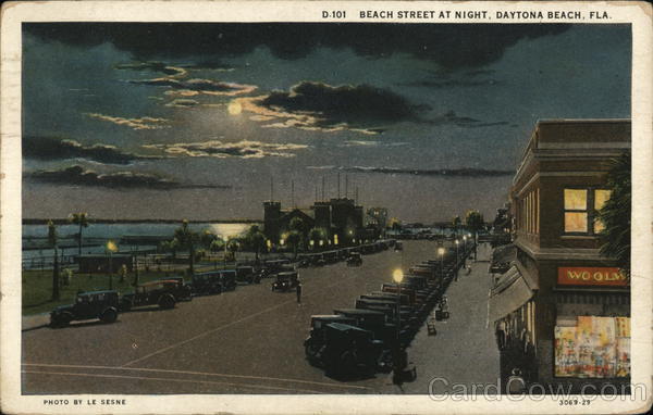 BEACH STREET AT NIGHT, DAYTONA BEACH, FLA.