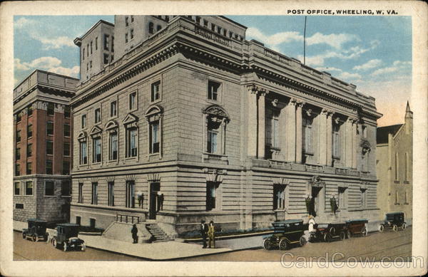 Front: POST OFFICE, WHEELING, W. VA. 51 11 0-0 Back: PUBLISHED BY I. ROBBINS & SON, PITTSBURGH, PA. MADE IN U. S. A. FRâ‚‚ PITTSBURGH PA FOR WRITING MESSAGES. Randson A-54085 ENICA AND CANADA. TWO CENTS.