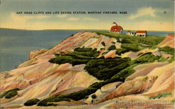 GAY HEAD CLIFFS AND LIFE SAVING STATION. MARTHAS VINEYARD, MASS.