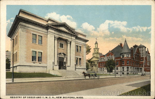 Front: 10 REGISTRY OF DEEDS AND Y. M. C. A., NEW BEDFORD, MASS. NY 11133 Back: C. T. AMERICAN 1785 R-81960 2.29 )). COLEC THIS SPACE FOR ADDRESS ONLY.