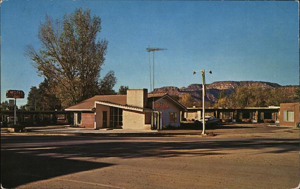 Located on scenic US Highway 89, near good restaurants & business district. Full size tubs, showers, wall to wall carpeting. Heat thermostat & air conditioning central in each room for your comfort. Television, radios & phones available. Gateway to Glen Canyon Dam & the hub of three national parks. Phone Midway 4-2616. |
