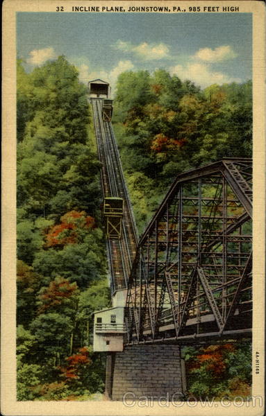 Front: 32 INCLINE PLANE, JOHNSTOWN, PA., 985 FEET HIGH 4A-H1168 Back: ED "C.T. ART-COLORTONEā REG.U.S. PAT. OFF. MADE ONLY BY CURT TEICH & Co., INC., CHICAGO JOHNSTOWN NEWS CO., JOHNSTOWN, PA.